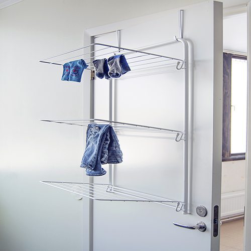 Dörrhängd torkställning som monteras enkelt över dörren till ditt badrum eller din tvättstuga. Passar perfekt för dig med det lite mindre badrummet eller helt enkelt för dig som behöver en yteffektiv lösning för att torka din tvätt. Ytterligare fina egenskaper är att torkställningen Viggo är både lätt och flyttbar, vik ner torkhyllorna så det är bara att packa med torkställningen när du åker till lantstället för sommaren.