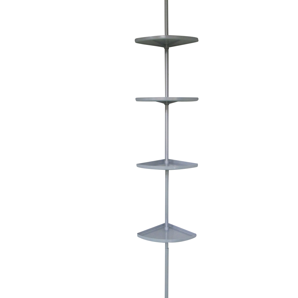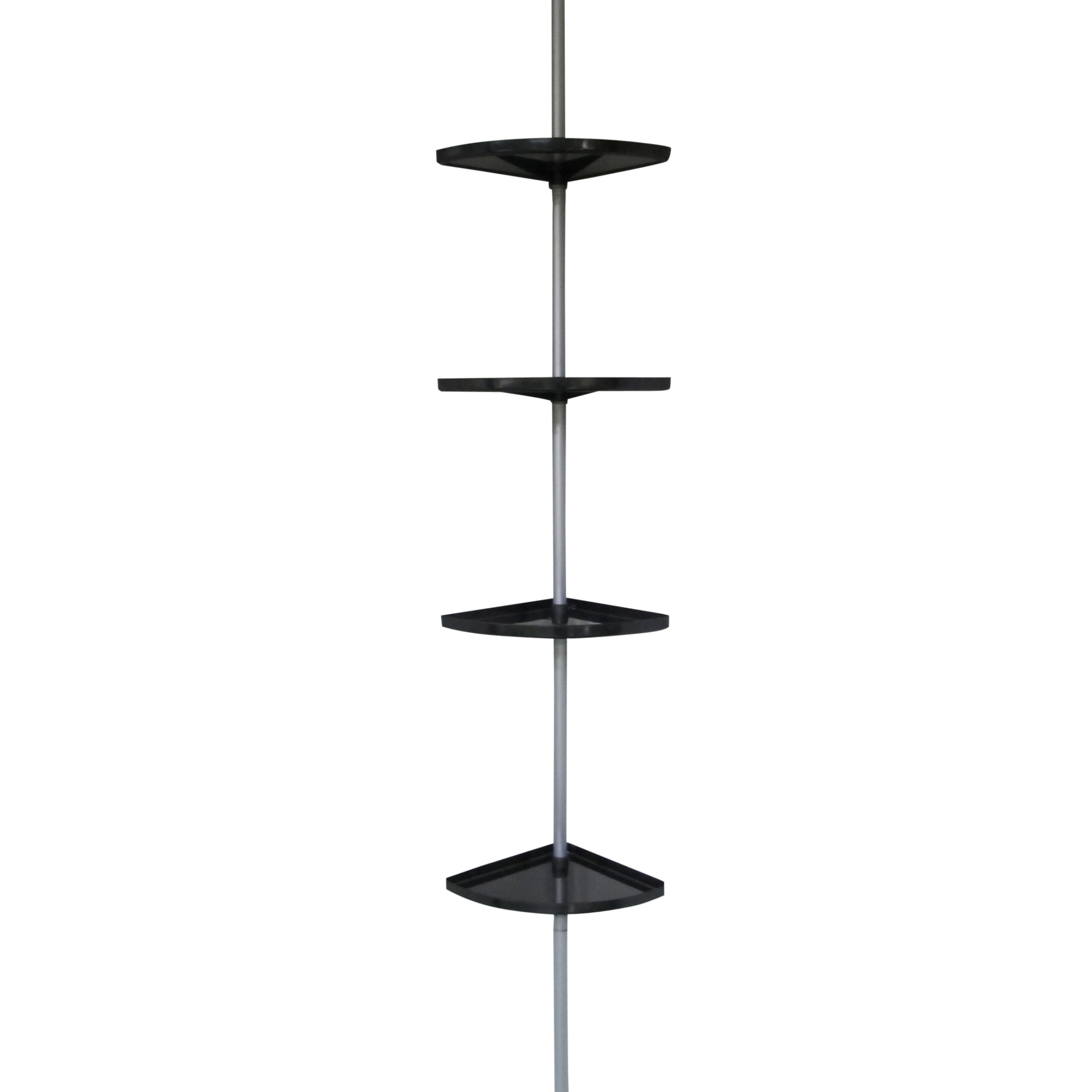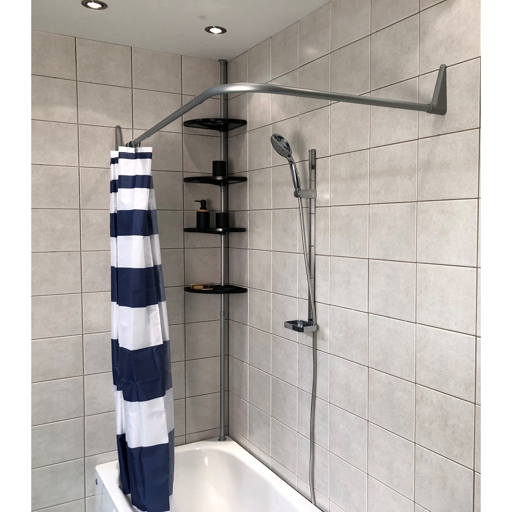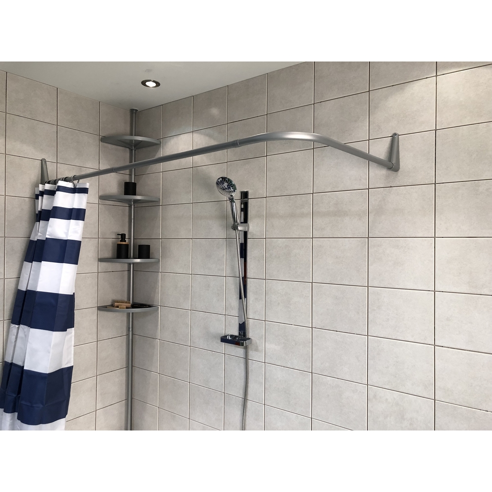 Hörnhyllan spänns enkelt mellan tak och golv eller varför inte skapa extra utrymme över badkaret genom att spänna hyllan mellan badkarskant och tak.